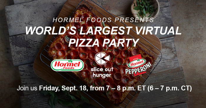 Be a part of something HUGE this Friday from 7-8pm ET as we attempt to set a world record for Largest Virtual Pizza Party! We’re teaming up with Hormel Foods and Slice Out Hunger to raise money for the Pizza Vs Pandemic campaign so healthcare workers around the county will be supplied with pizza. Participating is easy, all you have to do is register here and we’ll send you a link to join the Zoom event. To reach our goal and set the record, we’ll need every attendee to post a photo of themselves eating a slice during the event. It’s going to be AWESOME!