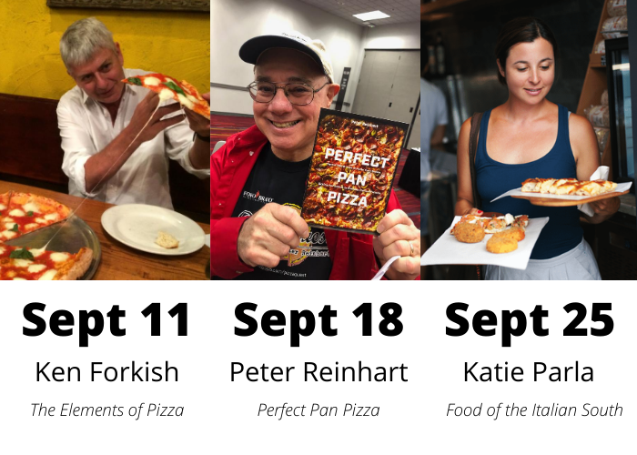 Check out this incredible series of classes I’ll be moderating as part of the Breville Pizzaliolo “Meet the Makers” series. These past few months we’ve been featuring some of the best pizza makers in the U.S. and September brings an extra special opportunity to learn from three incredible authors. Ken Forkish (of Ken’s Artisan Pizza in Portland, OR) wrote both Flour, Salt, Water, Yeast and The Elements of Pizza. Both are critically acclaimed and necessary reading for any pizza maker. Peter Reinhart (Johnson & Wales) has written a dozen books about bread and baking including The Bread Baker’s Apprentice, American Pie, and Perfect Pan Pizza. Katie Parla is a Rome-based food and beverage journalist who has written some of the most incredible food books of the past decade including American Sfoglino, Flour Lab, and Food of the Italian South.