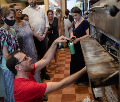 All walking tours follow the same pattern. You’ll visit three pizzerias that demonstrate different moments in the history of pizza, touring the kitchens and eating a slice at each stop. The big difference between the tours is their neighborhoods. If you’re looking to visit a particular neighborhood, choose the tours with that neighborhood’s name. You can also check out the map above to see which pizzerias are potential stops on each tour.