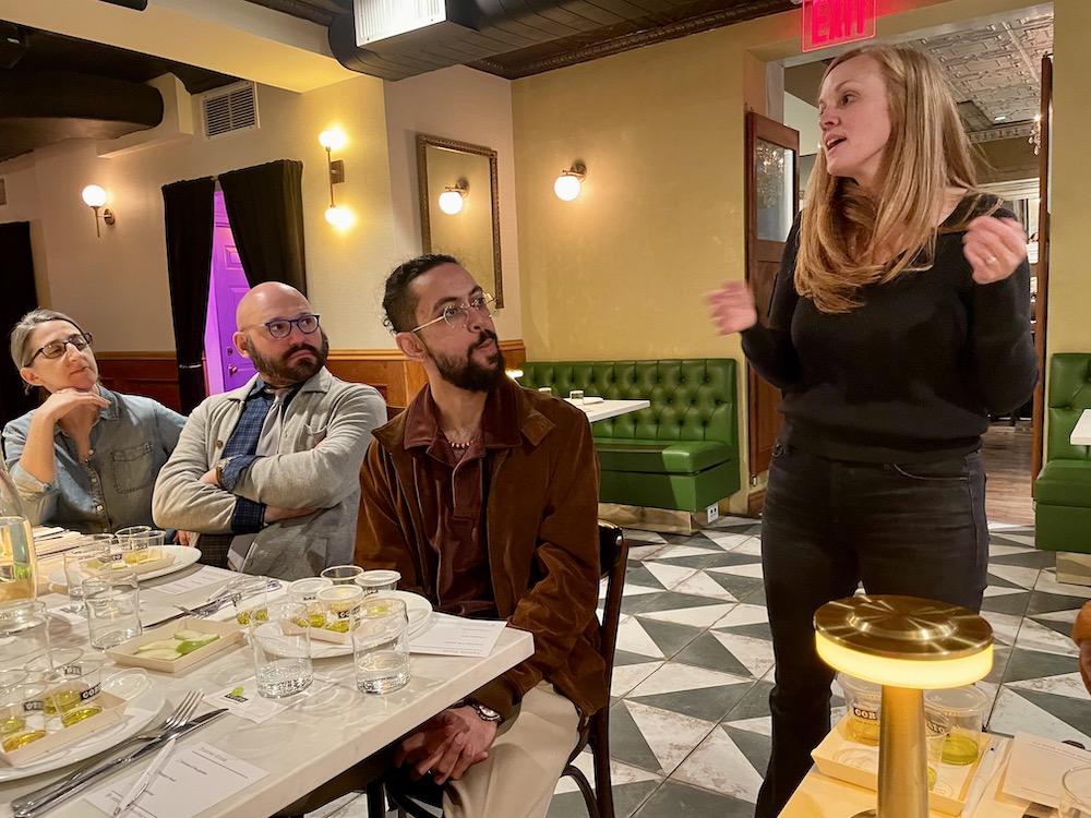 Last month our team of intrepid pizza tour guides assembled at Table 87‘s Gowanus location for an olive oil lesson from Corto, a California-based company. We’re always looking to expand our knowledge and luck delivered a glorious solution in the form of Lisa Pollack of Corto Olive Oil. Lisa has been the head of education for this California-based company for about 5 years. Before working for Corto, Lisa worked at the California Olive Oil Council. When I emailed Lisa about hosting a virtual olive oil tasting for my crew, she was excited to tell me that she’d be in NYC and could run the tasting in person!